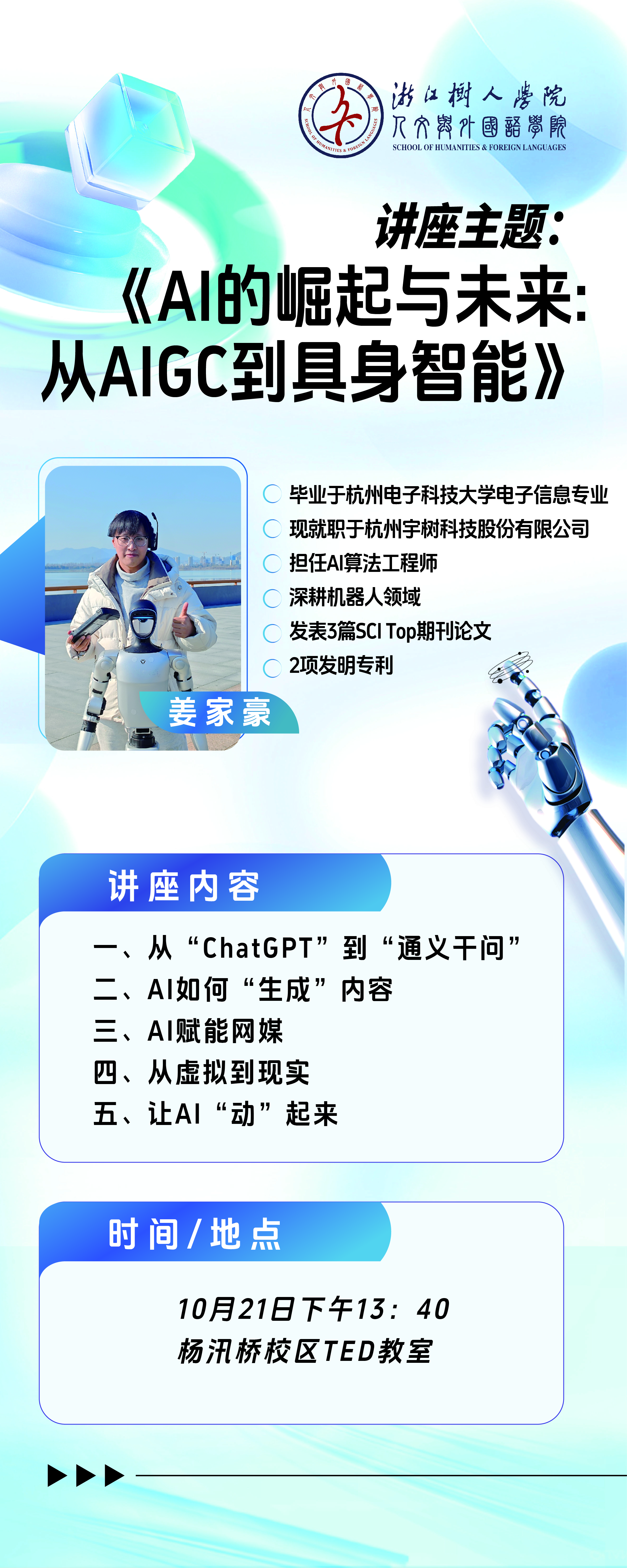 10月21日学术讲座|AI的崛起与未来:从AIGC到具身智能