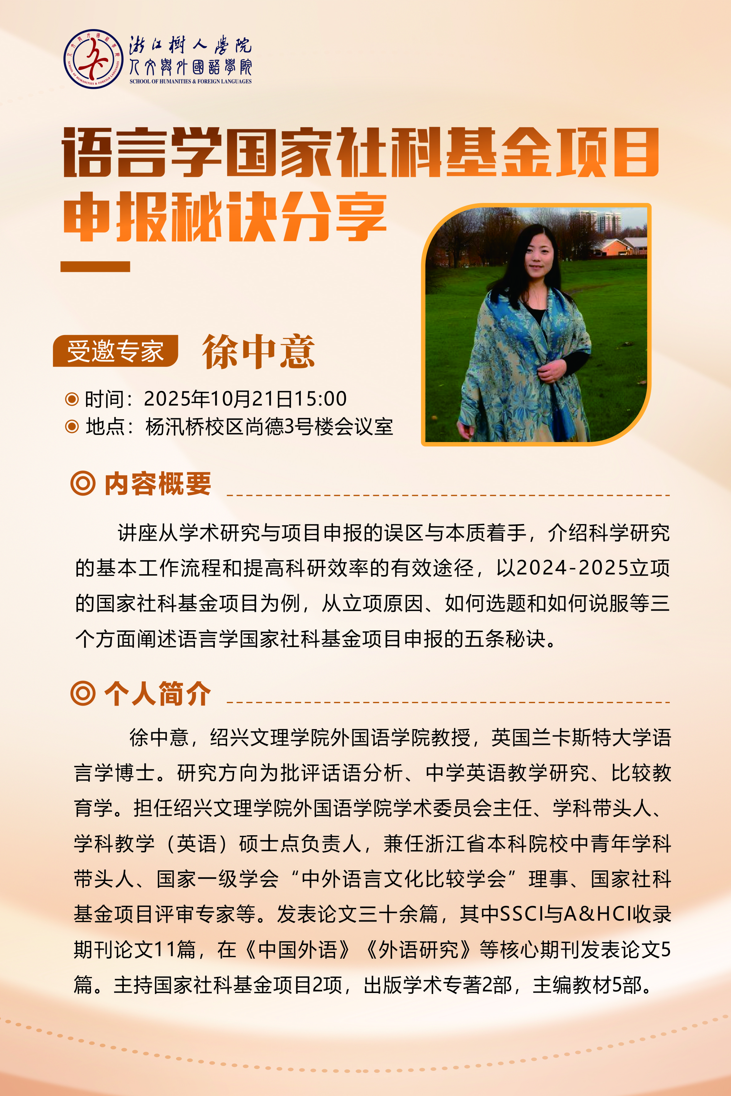 讲座《语言学国家社科基金项目申报秘诀分享》