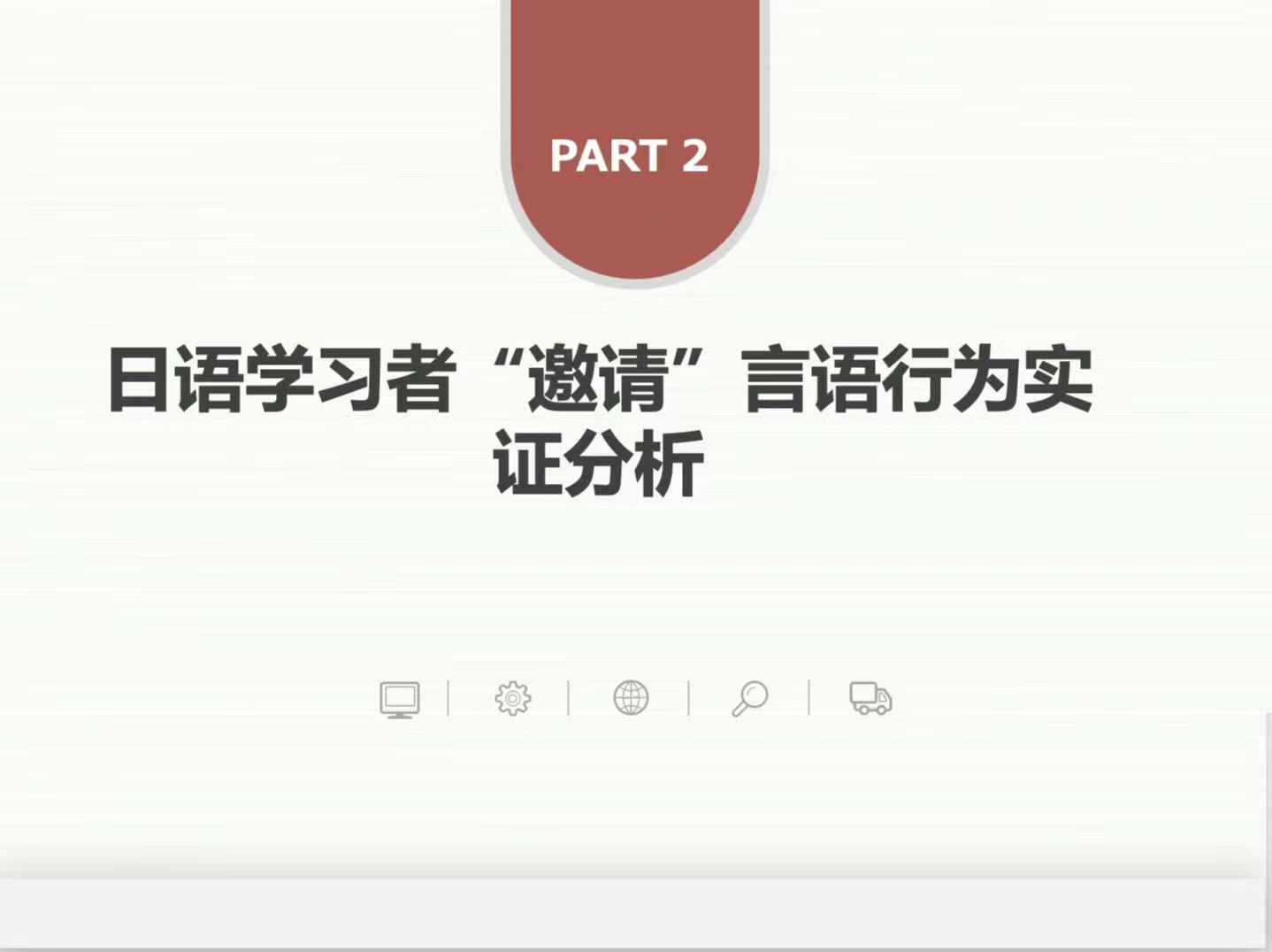 李老师在报告中以中日两国的邀请言语行为为例,介绍了两国邀请行为的结构、语言形式的差异,并通过对日语学习者实际使用情况的分析,在明确日语学习者语用知识的使用情况上,探讨了在日语教学中应用的可能性和注意事项。