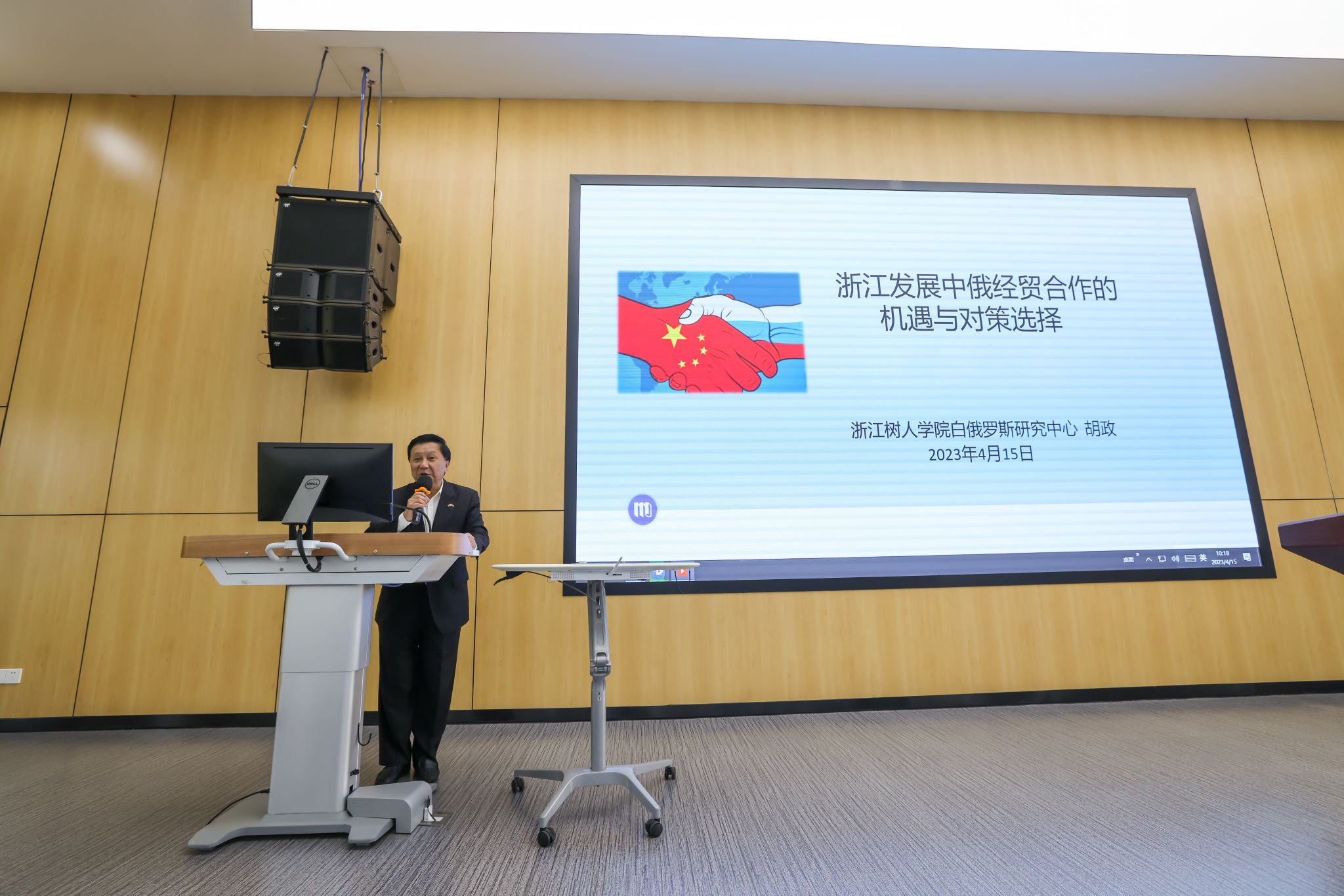 第十三届全国政协外事委员会委员、中国俄罗斯东欧中亚学会副会长季志业作了题为《对中俄关系的几点思考》的发言,他指出,俄罗斯是不可多得的经济合作伙伴,它具有丰富的资源、一定潜力的市场、部分先进技术、优秀的科技人才,这些都是我们可以汲取的力量。中白工业园前首席执行官、国家高端智库深圳综合开发研究院理事胡政在发言中认为,浙江省应发挥地方经贸实力雄厚的优势,推进科技合作,抓好义新欧班列运营,在对俄合作中作出新的成绩!