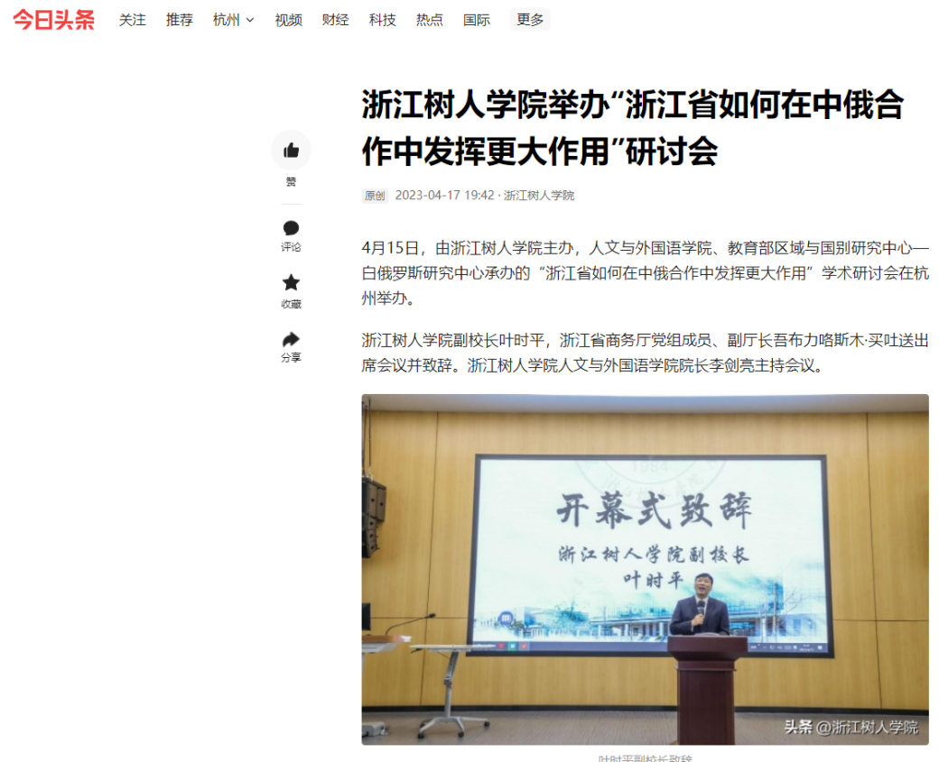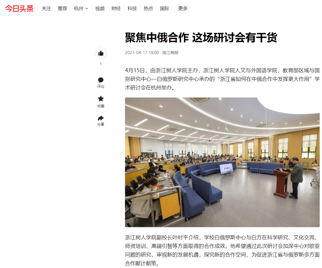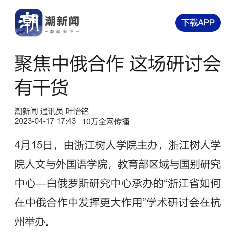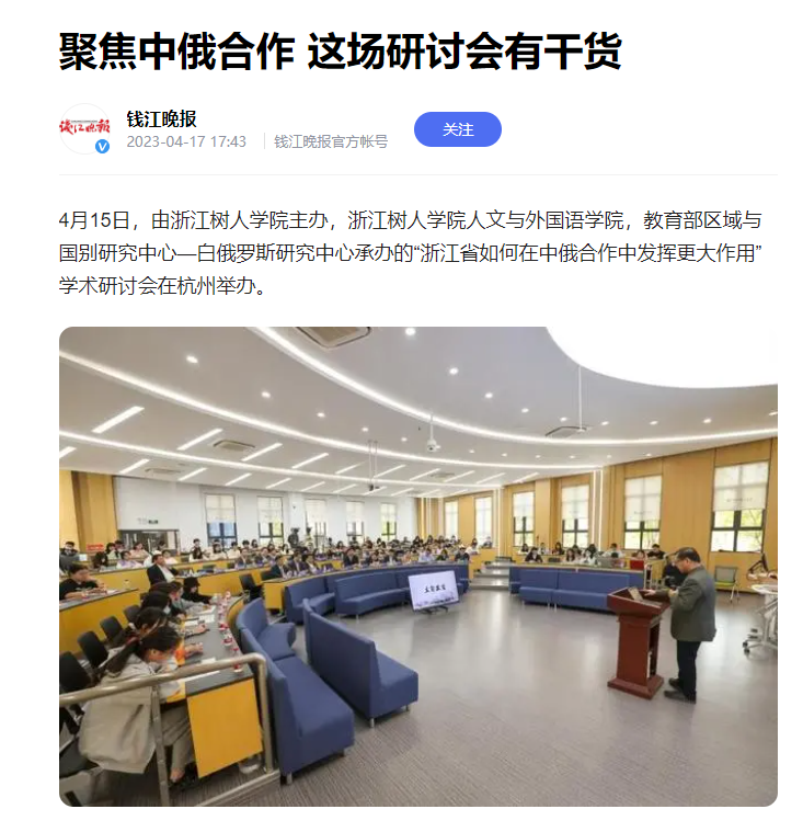 4月15日,由公司主办,古天乐代言太阳集团138,教育部区域与国别研究中心— 白俄罗斯研究中心承办的“浙江省如何在中俄合作中发挥更大作用”学术研讨会在杭州举办。引起钱江晚报、潮新闻、香港文汇网等多家媒体的广泛关注和报道。
