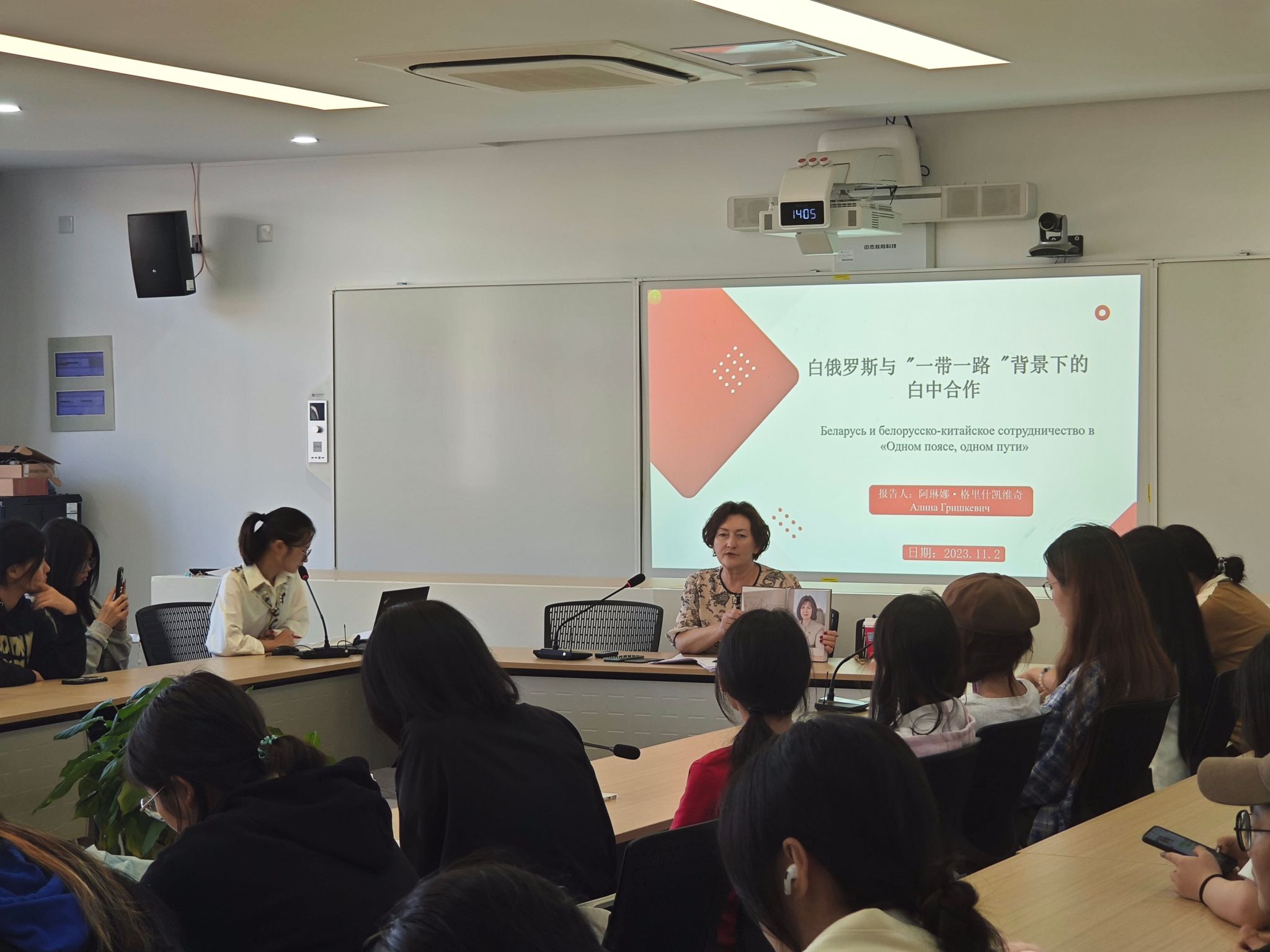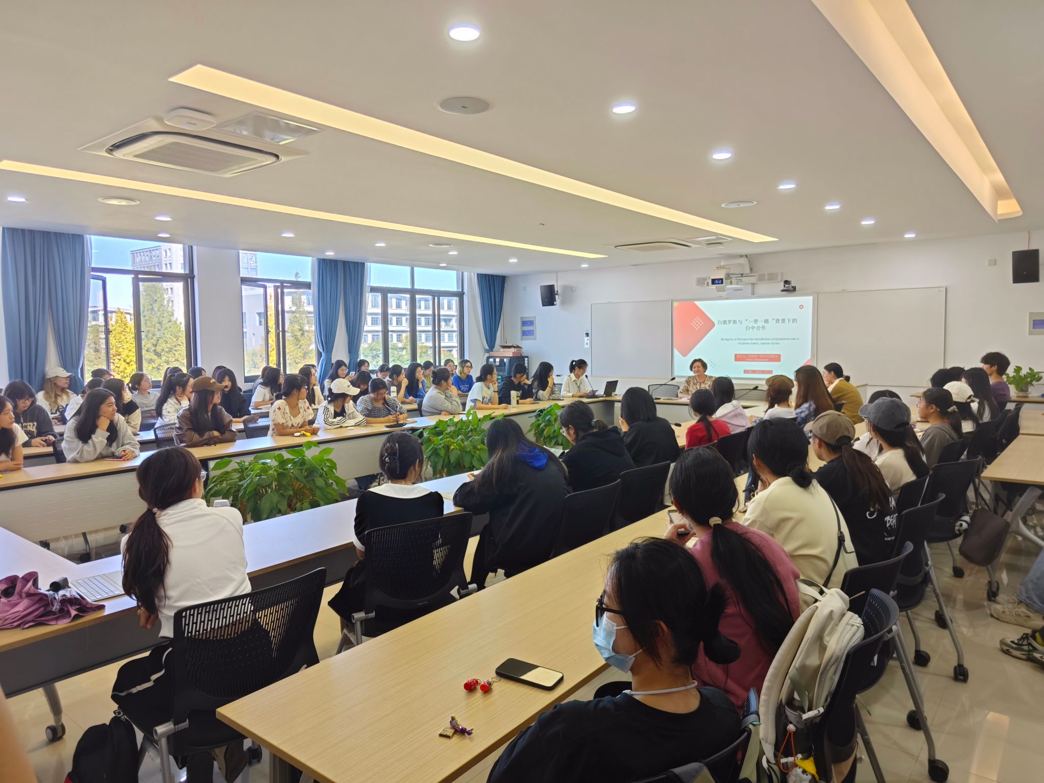 下午的讲座主题为《白俄罗斯与“一带一路”背景下的白中合作》,讲述了白俄罗斯历史及其现代各个领域发展的特点,特别是在“一带一路”框架协议内白俄罗斯与中国全天候全面战略伙伴关系的重要意义。