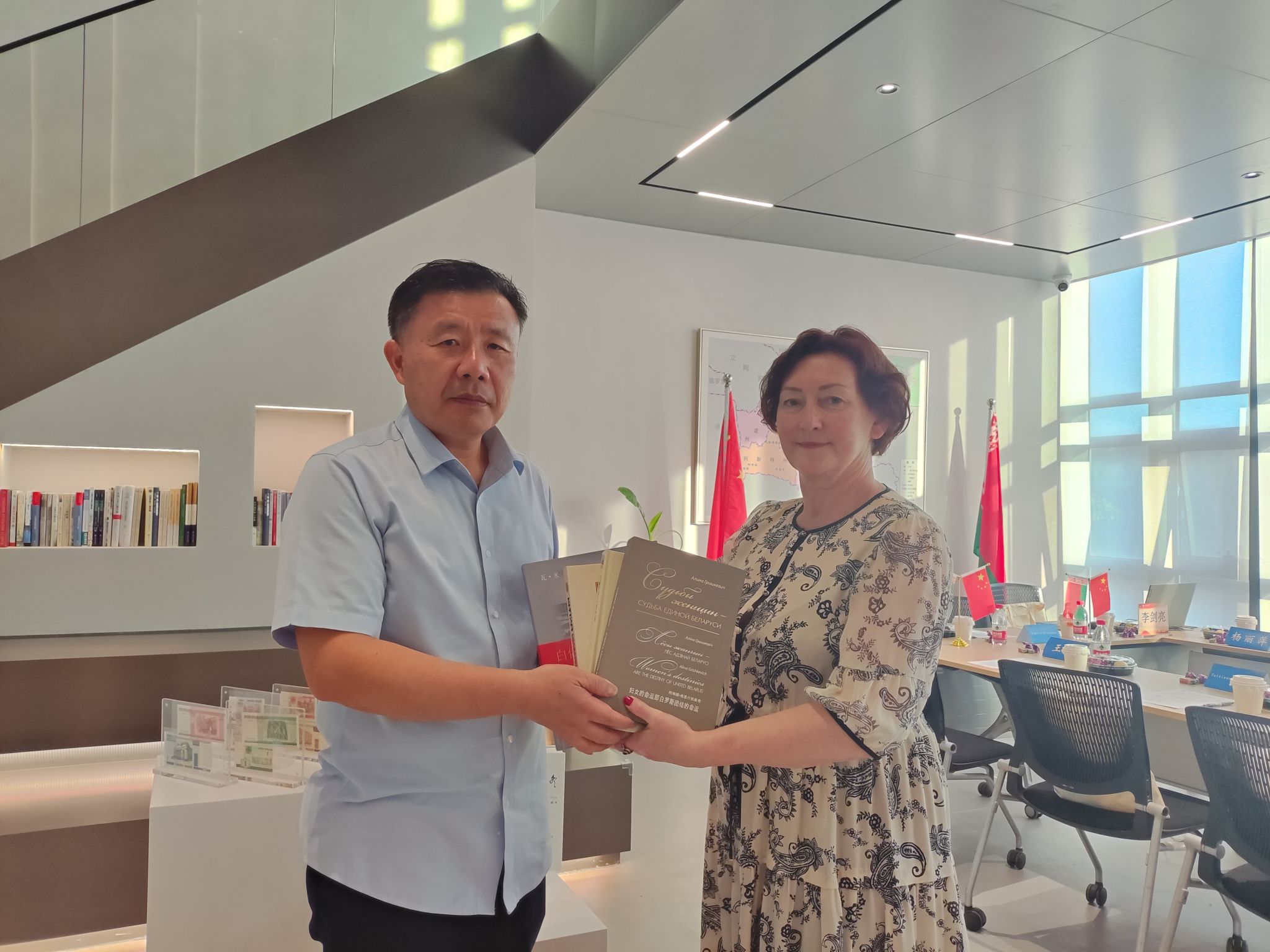 座谈期间,格里什凯维奇记者向中心赠送了她于2022年出版的专著《妇女的命运即白罗斯团结的命运》。该书同时以4种语言出版—白俄语、俄语、英语和汉语。书中基于白俄罗斯妇女的独特命运,追溯国家历史、人民精神以及爱国主义,已在世界多国出版。
