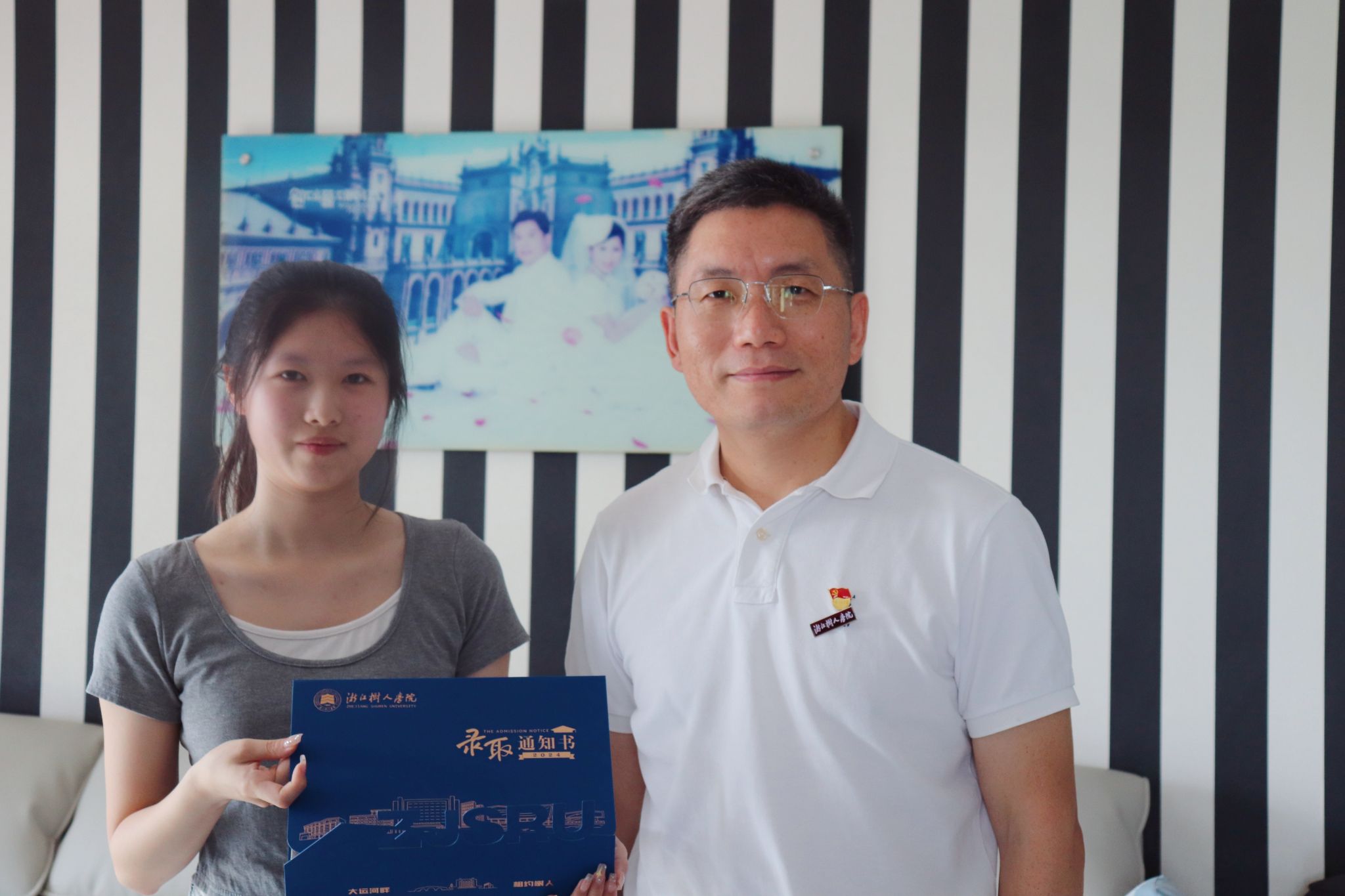 随着一段平行志愿录取工作的顺利结束,7月24日上午,公司党委书记何纪敏带队,亲自为2024级汉语言文学专业新生俞思亦送上录取通知书。