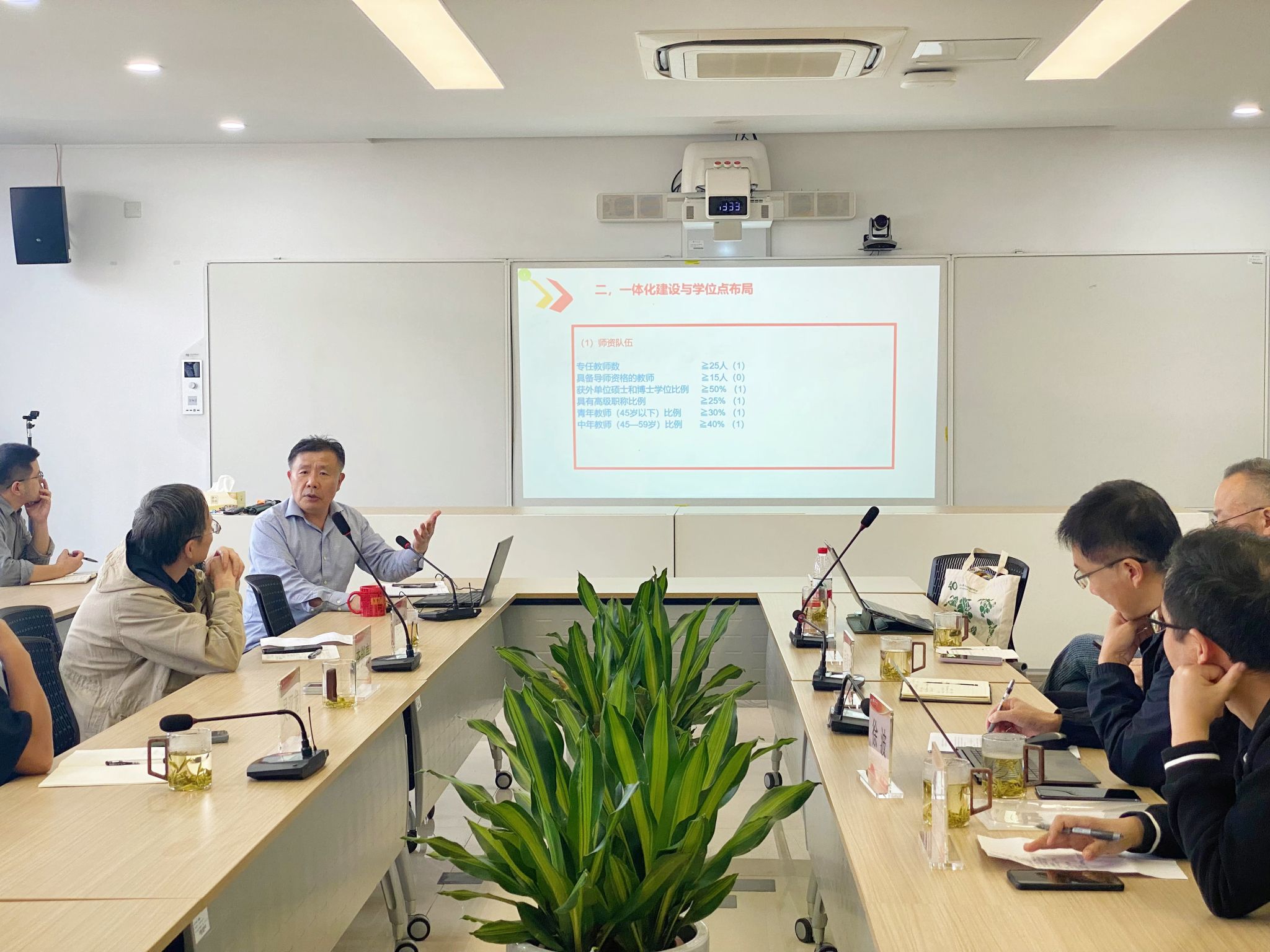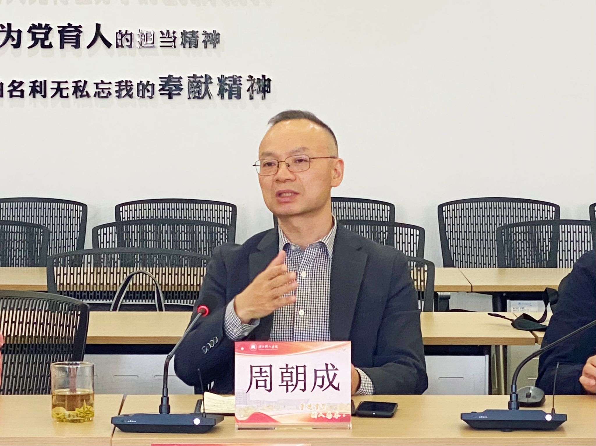 周朝成首先介绍了此次调研的目的,强调了学科专业一体化建设在校院发展中的重要性,特别是加快推进新一轮学位点布局建设已迫在眉睫。
