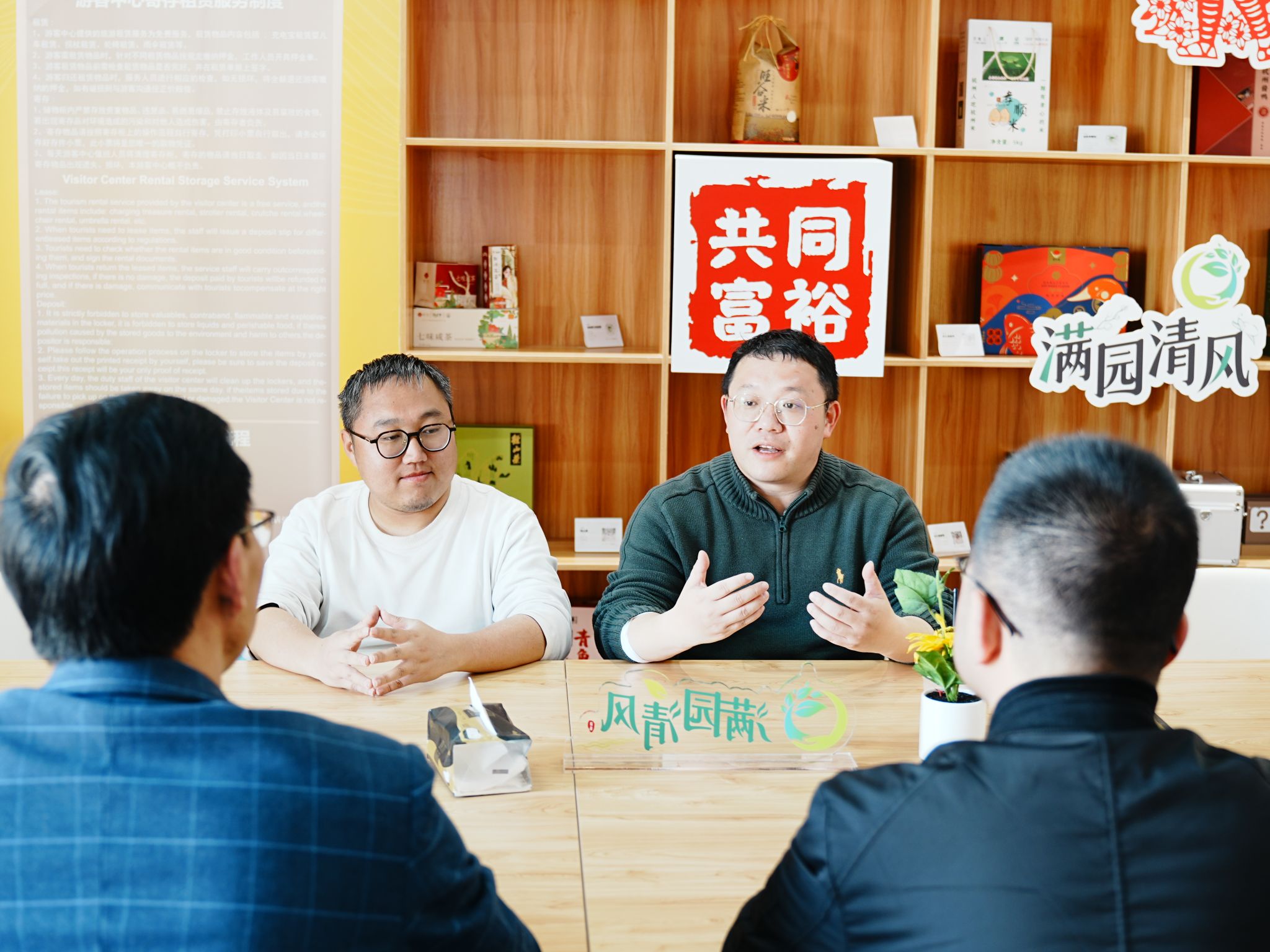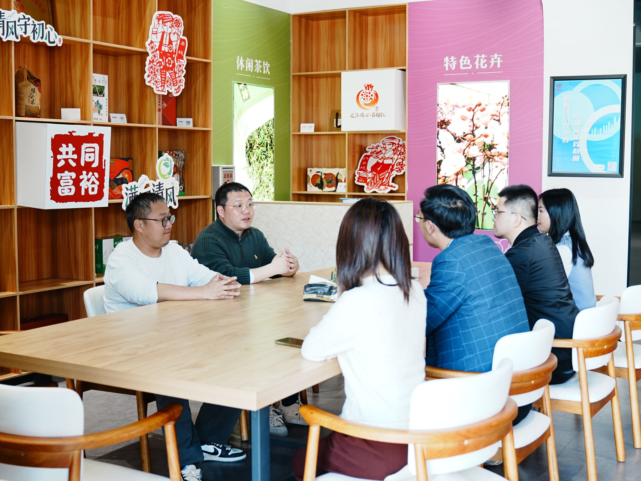 浙江沃隆文化传媒有限公司董事长吴超波重点介绍了花园村新业态“潮农共富坊”项目。它位于中共西镇区委旧址旁,原先的农民房经过改造成为了一座现代化的直播基地、咖啡空间、研学体验中心。直播间内设备齐全,高清摄像头、专业麦克风、补光灯等一应俱全。直播间的运营模式独具特色:一方面,它聚焦花园村的特色农产品,如花卉等;另一方面,直播间还将乡村旅游纳入其中。花园村职业经理人沈晓燕表示,此次与树人公司的合作,是乡村借力高校资源实现产业升级的重要契机。“我们期待通过直播基地激活本地农产品销售渠道,通过咖啡空间提升乡村文化吸引力,通过研学中心打造青少年实践教育品牌,真正让高校智慧‘落地生根’,让村民共享发展红利。”