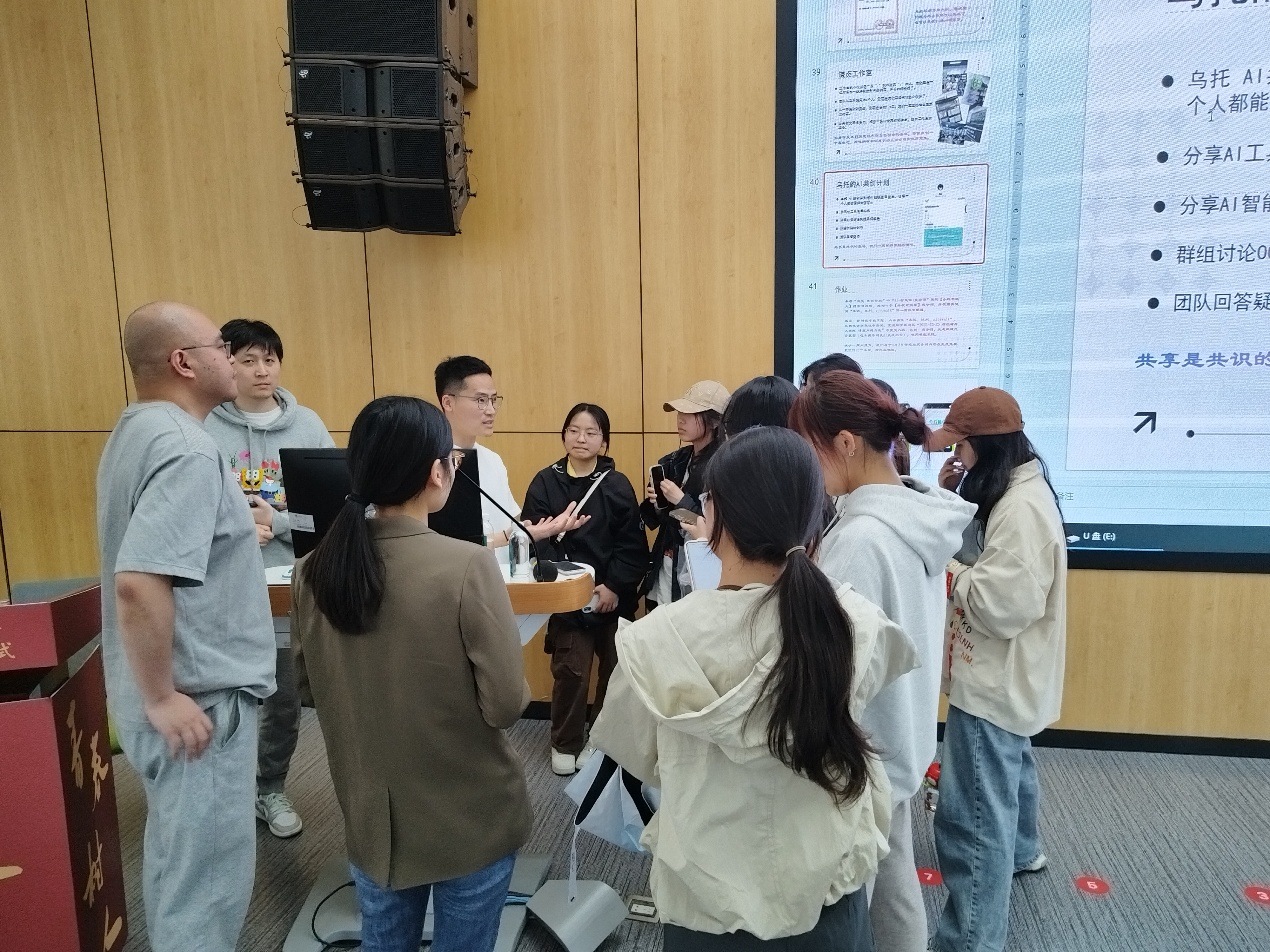 “这是一次脑洞大开的思维碰撞!”网络与新媒体专业大二员工张可表示,“王老师让我们看到AI不仅是代码,更是重塑文明的力量。”课后,王金鹏博士向同学们布置了“乌托AI共创计划”的实践作业,同学们可通过提示词工坊开发专属AI应用,优秀作品将获得团队技术支持。