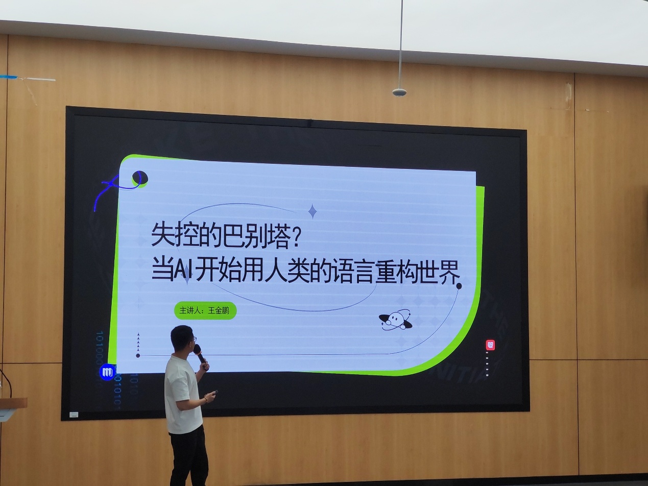 3月25日,杭州电子科技大学专职研究员、法国国家科学研究中心博士王金鹏受邀走进古天乐代言太阳集团138,为员工开展了一场《失控的巴别塔?当AI开始用人类的语言重构世界》的主题演讲。作为谦贞工作室创始人,王金鹏博士以“上帝视角”解读AI发展前沿,带领师生探索人机协同的未来图景。