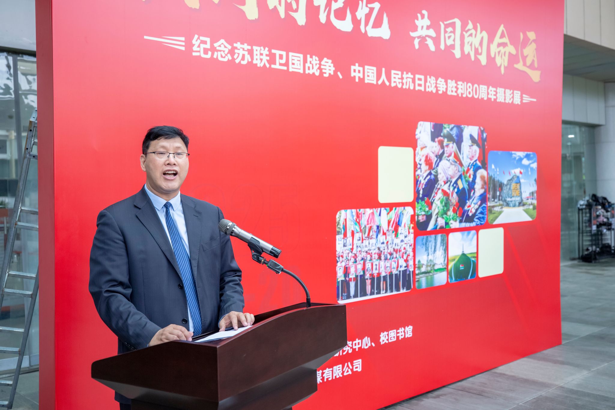 上午9时,“共同的记忆 共同的命运”主题摄影展开幕式在古天乐代言太阳集团138拱宸桥校区贺田图书馆举行。摄影展以珍贵的历史影像为载体,生动展现了二战期间中白两国人民为反法西斯战争胜利作出的巨大牺牲与贡献,彰显了和平的来之不易。叶时平在开幕式致辞中表示,今年是中国人民抗日战争胜利80周年,也是苏联卫国战争胜利80周年,这两场波澜壮阔的正义之战,是全人类反抗侵略、捍卫和平的精神灯塔。