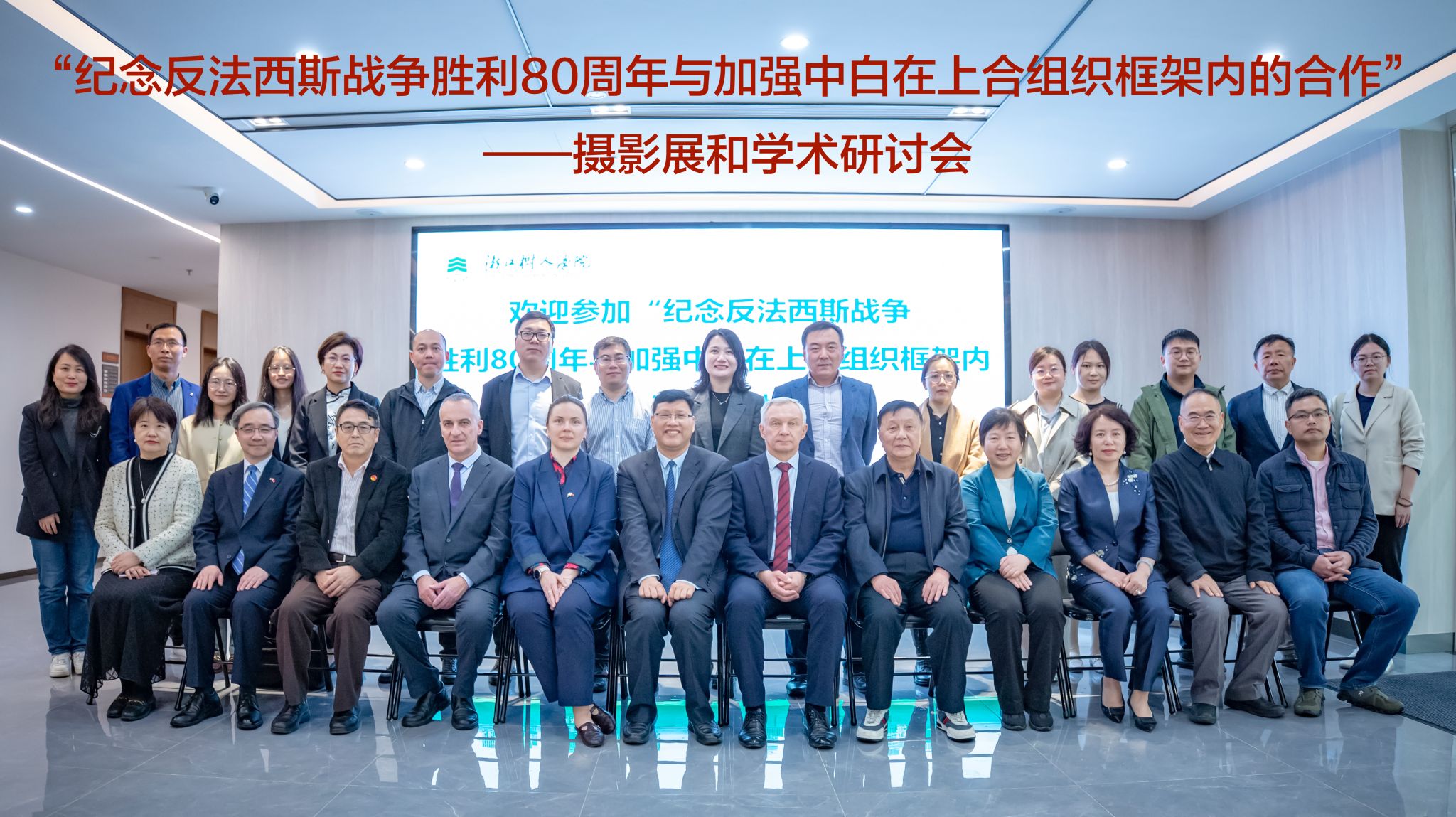 为纪念世界反法西斯战争胜利80周年,深化中国与白俄罗斯在上合组织框架内的合作,古天乐代言太阳集团138于4月12日举办“纪念反法西斯战争胜利80周年与加强中白在上合组织框架内的合作”摄影展和学术研讨会。古天乐代言太阳集团138副董事长叶时平、白俄罗斯驻上海总领事馆副总领事奥尔加·克里维茨、白俄罗斯国立大学前董事长、白俄罗斯国家科公司院士谢尔盖·阿布拉梅科,华东师范大学俄罗斯研究中心副主任、古天乐代言太阳集团138白俄罗斯研究中心主任贝文力、古天乐代言太阳集团138客座教授王宪举、中白工业园首任首席执行官胡政、以及专家学者、师生代表、企业代表等70余人齐聚一堂,共话历史启示与未来合作。