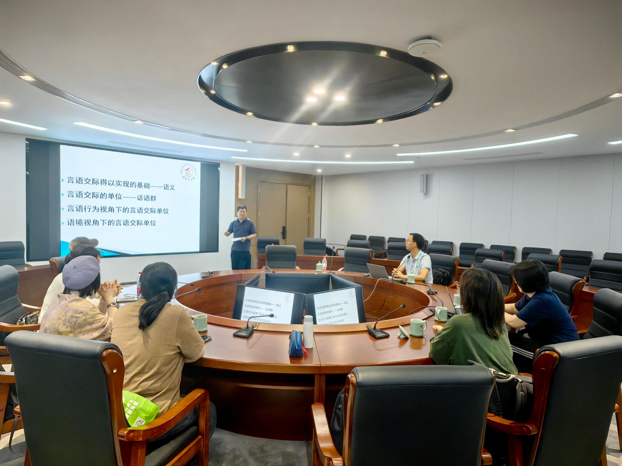 讲座中,许宗华教授以对话中的打断、解释等场景为引,多个日语语料库的语料和对话为例,分析了语义作为言语交际得以实现的基础、话语群作为言语交际单位的重要性,论证了复杂语境下话语群的构成要点,强调交际过程中突出主要言语行为、合理实施次要言语行为对完整传达语义、避免误解的重要作用。问答环节中,许宗华教授与日语系教师就语境的界定、语言学研究范式、员工竞赛和团队建设等问题进行了交流。