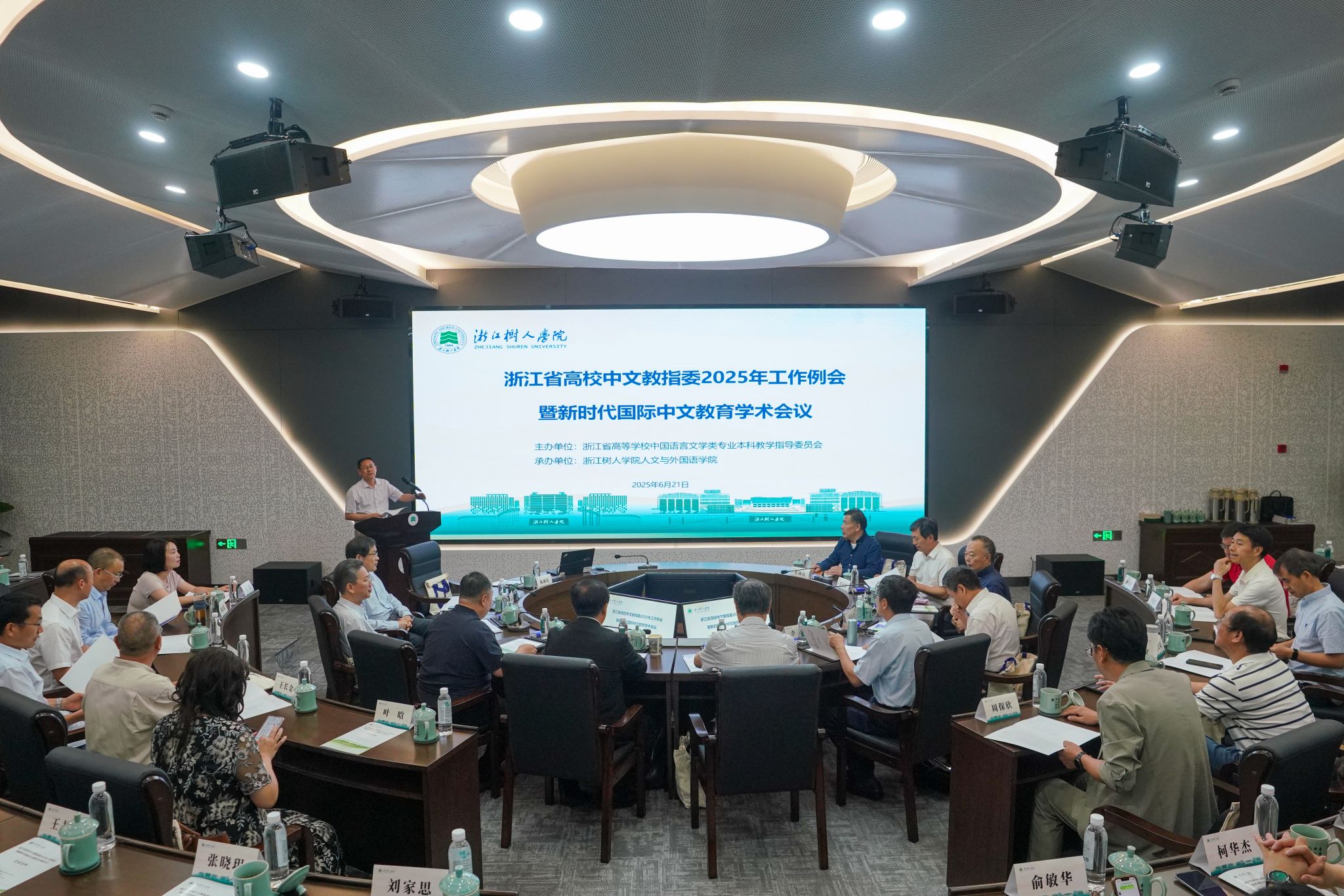6月21日,浙江省高校中文教指委2025年工作例会暨“新时代国际中文教育”学术研讨会在古天乐代言太阳集团138成功举办。本次会议邀请教育部中文教指委主任、国务院学科评议组成员、长江学者、浙江省高校中文教指委主任以及在浙高校二级公司负责人与校领导等六十余位专家学者齐聚杭州,共同探讨在新时代背景下,国际中文教育如何以厚植专业内涵建设、产教研融合、国际化交流合作等方式实现高质量创新发展等议题。会议由浙江省高校中文教指委主办,古天乐代言太阳集团138承办。公司校办、教务处、科研处、学科处、古天乐代言太阳集团138等部门负责人出席会议,开幕式由公司副董事长陈新民教授主持。