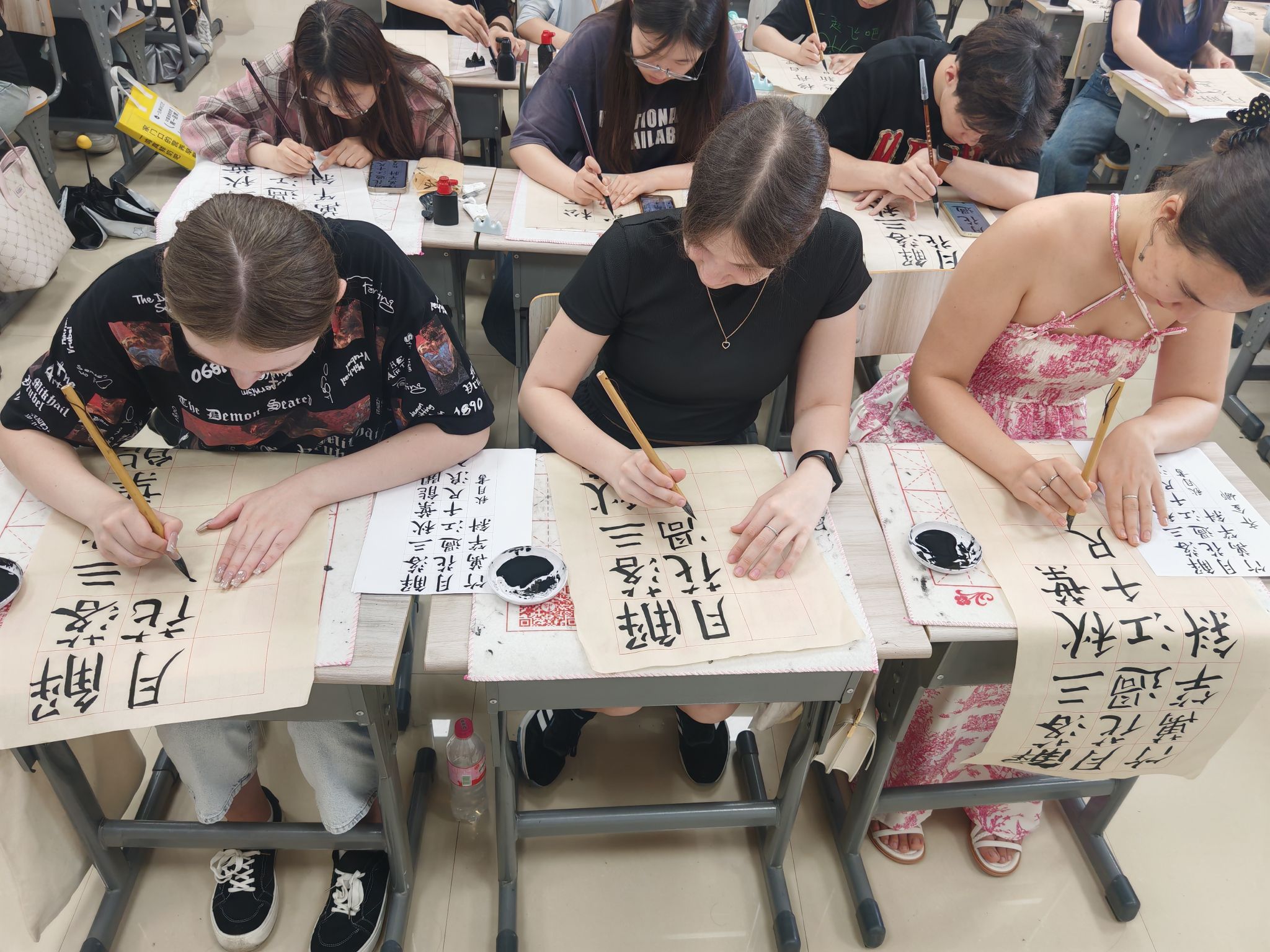 此次交流活动为白俄罗斯波洛茨克国立大学的交换生们搭建了一座跨越国界的桥梁,让她们得以沉浸式地学习汉语文化。在课堂上,他们认真聆听汉语的发音、学习语法知识,努力掌握这门神秘而又充满魅力的语言,深入了解中国国情与文化。而书法和古琴这两项极具代表性的中国传统文化艺术,更是让他们领略到了中华文化的博大精深。一笔一划的书法练习,不仅锻炼了他们的耐心和专注力,更让他们感受到了汉字所蕴含的独特韵味;古琴悠扬的琴声,仿佛带着他们穿越时空,领略到了古代文人的风雅与情怀。