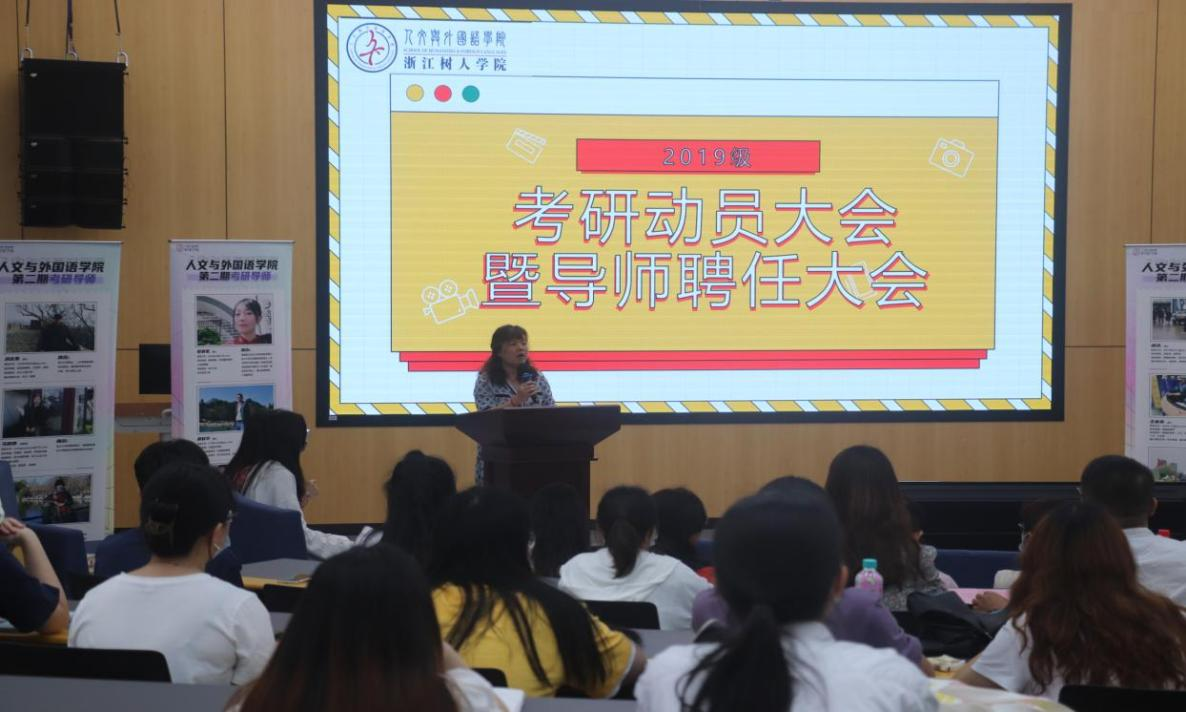 紧接着,新闻系教师马妍妍和汉语言文学教师孙旭辉作为考研导师代表发言,鼓励员工坚定信心,找准方法。再由2018级成功考上浙江科技公司的周学幸同学为大家分享了她备战考研的成功经验。同时,秘书学191班吴雨玥同学作为19级考研员工代表发言,讲出了在座所有同学的心声与期许。